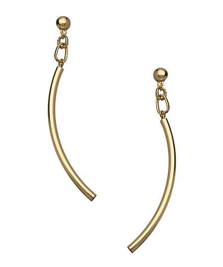 You'll cherish these Roman Luxe gold drop tube earrings from the moment you lay your eyes on them! The movement of the tube as it dangles from the gold ball is seductively appealing, and the look is one of refinement. Earrings have a post closure for pierced ears.
