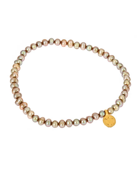 Satya Jewelry's dark pearl mini-lotus bracelet has a delicate, astonishing beauty. Lustrous gray pearls range in tone from blush to golden, and a tiny stamped lotus amulet sparkles in gold plated. It's an elegant piece that does so much with very little fuss.