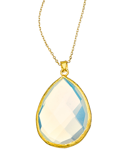Serious about dreamy fashion? Better get glowing with this enchanting moonstone teardrop pendant necklace from Seraphina! The large faceted gemstone has a gold vermeil halo and puts a fresh spin on classic princess styles. The necklace is breathtaking, and very rich looking.