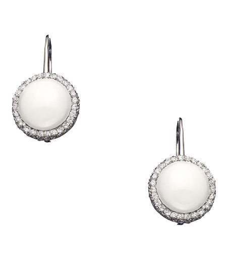 Make a statement with Seraphina's sublime white cabochon and cz drop earrings. Large white cabochon stones are surrounded by gleaming cz stone. The look is one of sophisticated elegance... so perfect for you! Earrings have a lever back closure for pierced ears.