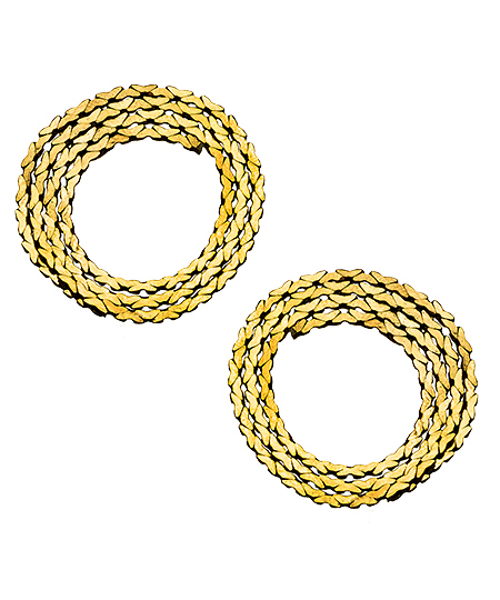 If you're looking for an easy way to add glam and movement to your favorite outfits, Serefina presents these magical vintage chain rope stud earrings. The hoop-style earrings feature multiple layers of gold chains. Incredibly lightweight, you'll forget you're wearing them until someone compliments you on their subtle, sophisticated shine.