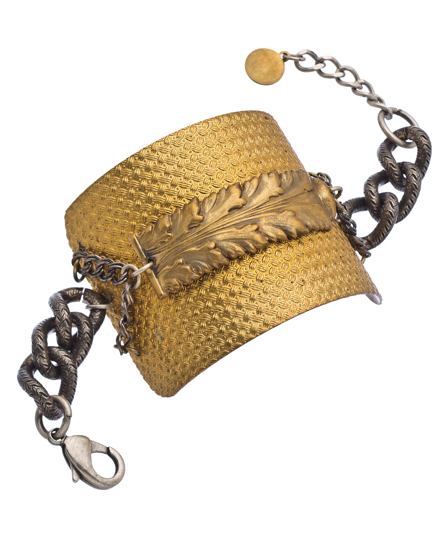Explore epic fashion with Sheer Addictions's Colton bracelet. This antique brass cuff features an antique leaf pendant that whisks away outfits on a shine-filled odyssey. Sheer Addiction's bracelet basks in a gorgeous simplicity, so bring along your wardrobe and style.