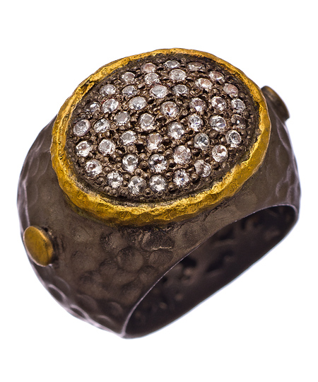 A strong personality should be complimented by a strong piece of jewelry like the crystal paved warrior ring from SKU. The grand ring can provide the bit of edge you're looking to add to your ensemble. In contrast, the crystals at the top provide some great glimmer to the piece.