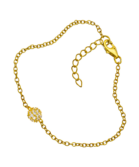 Perfect for the dainty jewelry lovers, the gold vermeil crystal ball bracelet from SKU is simply stunning. The modest bracelet is a great finishing touch to almost any outfit. This bracelet fastens with a lobster claw closure.