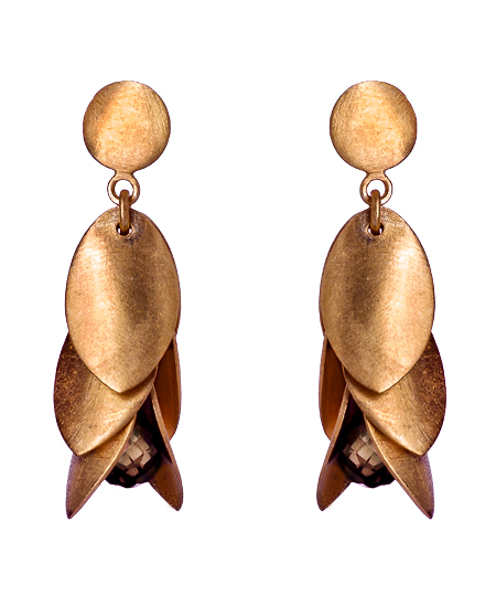 Like a collection of beautiful flower petals, the smokey quartz dangling petal earrings from SKU make things feel dainty and romantic. A faceted smokey quartz peaks out from the bottom. These earrings fasten with post back closures for pierced ears.