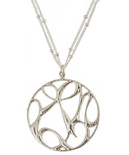 Sophia & Chloe silver peace, love, and happiness cutout necklace is spectacular. A luminous sterling silver pendant features the swirling, decorative letters "PLH," signifying peace, love, and happiness. Each letter is cut out for an open, airy design. Measuring 1 1/8 inches in diameter, the pendant with a rosewood finish dangles from a 17 inch long dotted sterling silver double chain. The necklace includes a 2 inch extension for a perfect fit, and fastens with a lobster claw clasp.