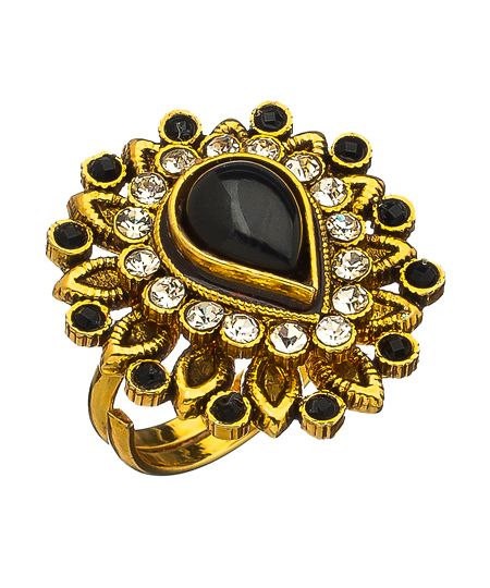 Step out in style with the onyx teardrop cocktail ring from Taara. The onyx stone in the middle is teardrop shaped and surrounded by round cut crystal stones. You'll love the fun look of this brilliant piece.