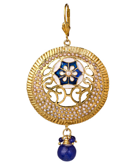 You'll love these enamel and seed pearl disc earrings from Taara. There's no shortage of enamel and seed pearls on these beauties. Every inch of this design is well thought out and executed. How can you pass them up? Lever back closure for pierced ears.