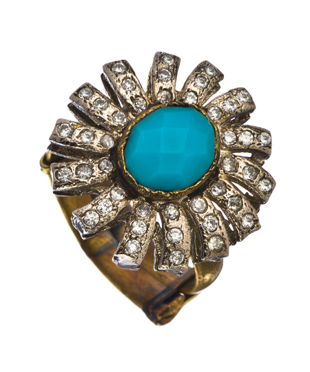 Uniquely designed and beautifully crafted, this turquoise and crystal sunburst ring from Taara is simply exquisite! A gorgeous, faceted turquoise stone is the focal point, and is enhanced with multiple rays of three crystals. A timeless look with a modern twist... fabulous! Ring is adjustable for the perfect fit.