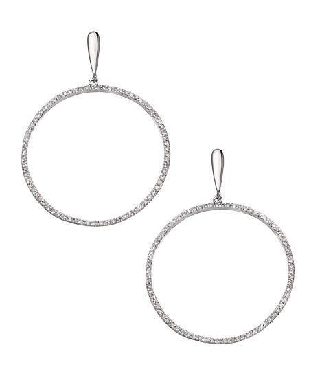 Tang and Song's sterling silver and pave CZ drop earrings are the touch of elegance you expect and deserve. The attractively designed hoops hang from a smooth, silver elongated teardrop and dangle, while seductively catching the light and providing the sparkle required to complete your look. Earrings have a post closure for pierced ears.