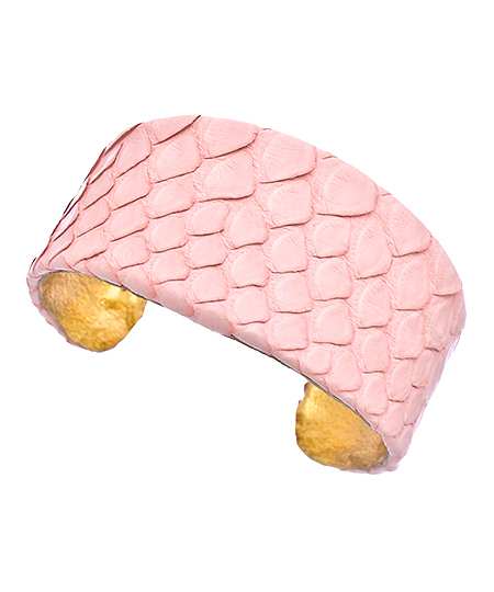 This eye-catching blush python curve cuff bracelet from Ted Rossi has a delightful appeal. The chic bracelet is crafted with pale pink python-print leather, which adds bold presence to this fun-loving accessory. Pair it with your favorite earrings for a look that is all you.