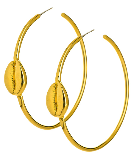 You'll want to pat yourself on the back for adding the gold cowrie hoop earrings from Tiffany Chou to your collection. The simple style comes alive with a cowrie design along the front. These earrings fasten with sterling silver post back closures for pierced ears.