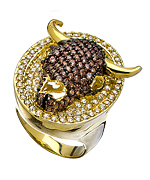 Vivian Jacob Gold Brown and White CZ Taurus Ring