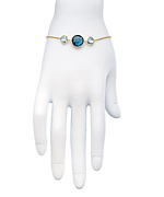 Proving that less is not always more, Tresor brings you this gold, London blue and sky blue quartz triple stone Fin bracelet. The London blue topaz is faceted, bezel set and flanked by two dazzling sky blue topaz stones. The bracelet fastens with a lobster claw clasp.