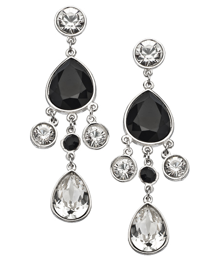 The spotlight will be on you while wearing these dazzling jet Cara earrings from Trifles by Stefanie Somers. The dramatic chandelier drops are crafted with clear and onyx Swarovski crystals trickling down in a variety of shapes. Mingle it with simple basics, and be the star of any day's show.