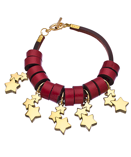 You're always a shining star so show the world with the shooting stars bracelet from Uno6eight. This playful red leather bracelet is adorned with leather rings and jingling gold star charms for a modern statement look. It's an enchanting jewelry accent that's heaven sent!