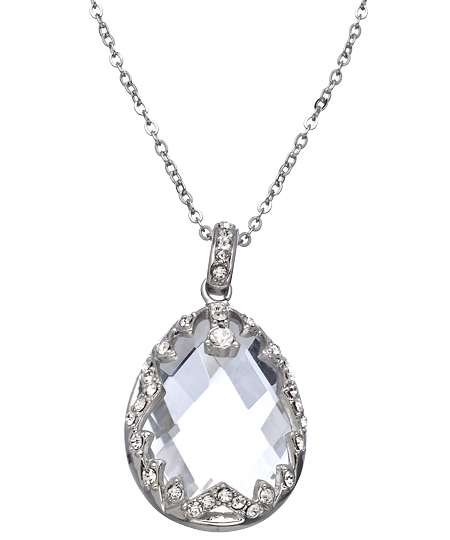 Brilliantly designed and exquisitely crafted, this Uno6eight silver and crystal jagged edge teardrop pendant necklace has the look of far more expensive jewels. The gorgeous setting makes the large stone seem to emerge from a crystal embellished bed and hangs from a strong silver chain. Necklace fastens with a lobster claw clasp.