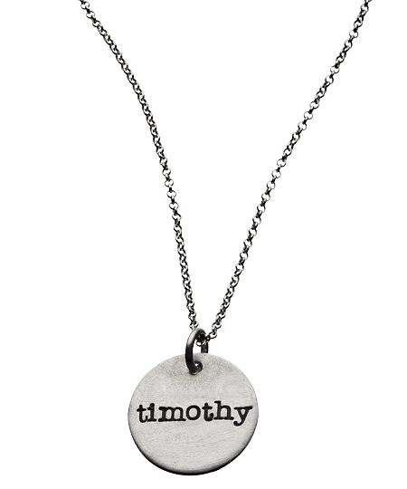 There is no denying the quality of this mod mommy name disc necklace from Urban Sweetpea. The handmade piece is fabricated from 100% recycled sterling silver and the disc pendant is hand stamped. This chain fastens with a spring ring closure.