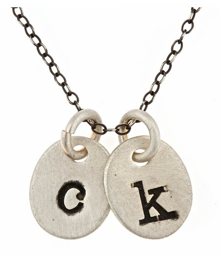 The Urban Sweetpea vintage type tiny cameo pendant necklace is a nostalgic reference to the classic fonts produced by a typewriter. Choose two initials or numbers to be stamped in a typewriter font onto either of the two itty-bitty pendants. The oxidized chain fastens with a spring-ring clasp.