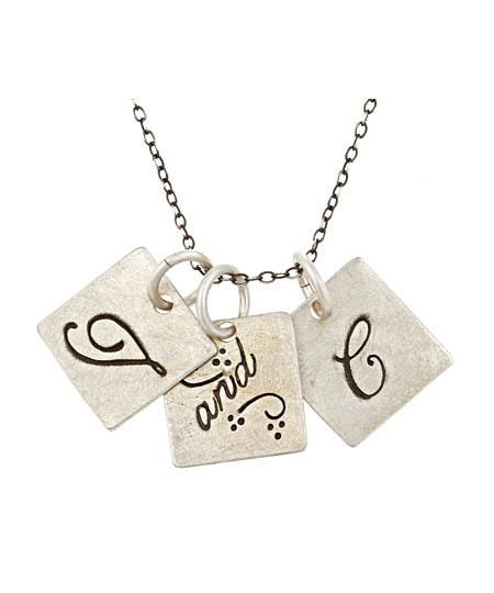 The Urban Sweetpea you and I triple-pendant necklace allows her to keep this sweet sentiment close to her heart. Each of the square sterling-silver petite charms is engraved: two of the charms can each be hand-stamped with an initial of your choice and the third pendant features a stylized "and." This thoughtful piece is finished with an oxidized chain that fastens with a spring-ring clasp.