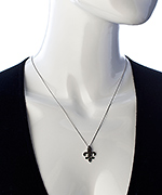 The Viducci silver and black diamond fleur de lis pendant necklace is exquisitely crafted and beautifully realized. Iridescent black pave diamonds add unprecedented sparkle to the updated, iconic symbol that hangs from a strong silver rope chain. Necklace fastens with a spring clasp closure.