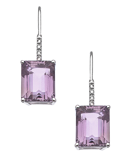 Delicately feminine, these stunning white gold, amethyst and diamond earrings from Viducci are the ones you'll reach for over and over again. The emerald-cut amethyst dangles, sparkles and shines, embellished with a row of pave diamonds at the french wire closure for pierced ears