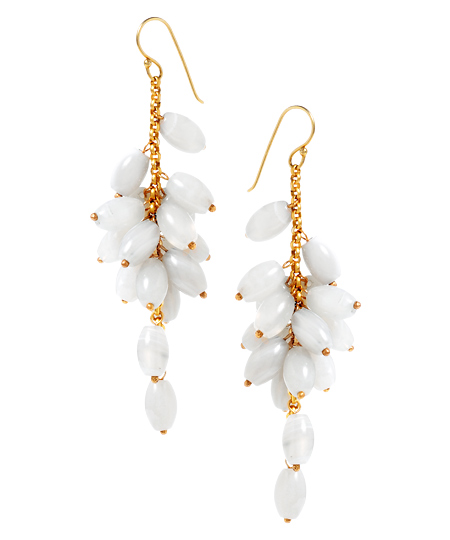 It almost goes without saying how fabulous you'll look in these gray agate cluster drop earrings from Wendy Mink. The cluster of gray agate stones thins out from top to bottom. These earrings fasten with gold vermeil French wire hooks for pierced ears.