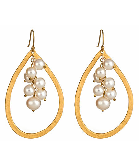 These tear drop pearl cascade earrings from Wendy Mink are first-class style. The cluster of pearls cascade down the center of the tear shape in striking fashion. French wire closure for pierced ears.