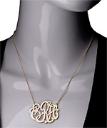 West Avenue Jewelry Oval Lace Monogram Necklace is a must-have in your collection.Oval lace monogram hangs on a 16 inch chain. Pendant is 1 1/2 inches in diameter. This necklace comes in your choice of sterling silver, 22k gold vermeil over sterling silver or solid 14k gold. Please enter initials in the exact order that you want them to appear. Typically the last initial is placed in the center for monograms (ex: first initial, last initial, middle initial). Size may vary slightly.