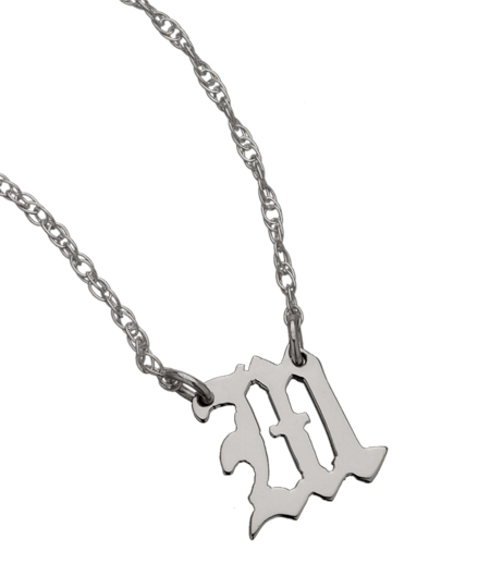 West Avenue Jewelry tiny Gothic initial necklace is 1/3" in diameter. Any Gothic initial of your choice will be made in sterling silver. 16 inch chain is standard but longer chain can be made upon request.