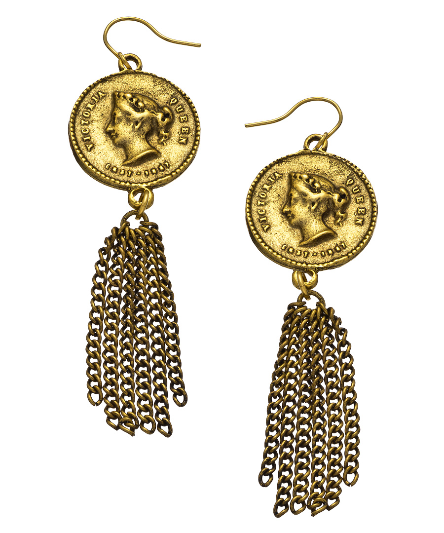 Wear a look that's 'so money'! Antiquities treasures inspire Yochi's antique gold coin tassel earrings. Whether you've got a passion for coins or adventurous jewelry, Yochi's offering is a smart investment that'll earn you lots of style currency.