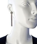 A crystal studded snake's head - complete with gleaming green eyes, sits at your ear lobe in these Yochi silver, crystal and chain snake earrings. Representing the snake's body is a drape of four silver chains. These stunning earrings are sure to bring many compliments your way! Earrings have a post closure for pierced ears.