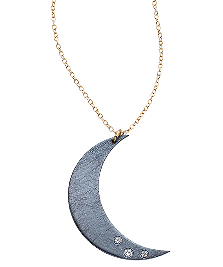Discover the secret to keeping all eyes on you when you with this gorgeous CZ crescent moon necklace from Zina Kao. The intriguing pendant is a mesmerizing crescent moon accented with three starry cubic zirconia stones. The elegant necklace is a focal point